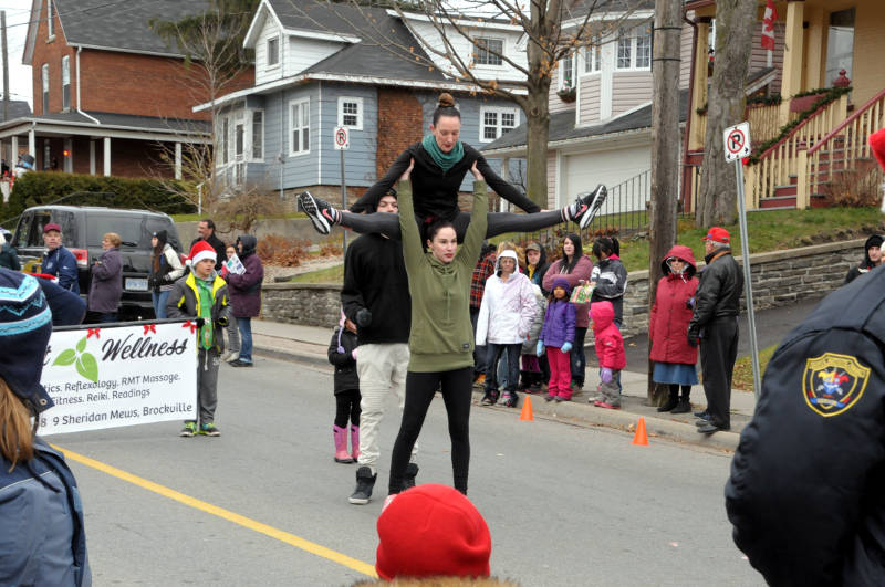 Brockville Santa Parade Nov2815 14 Edited Some acrobatics in front of the Mint Wellness float. Scenes from the Santa Claus Parade on Saturday, Nov. 28, 2015 in Brockville, Ont. (Newswatch Group/Bill Kingston)