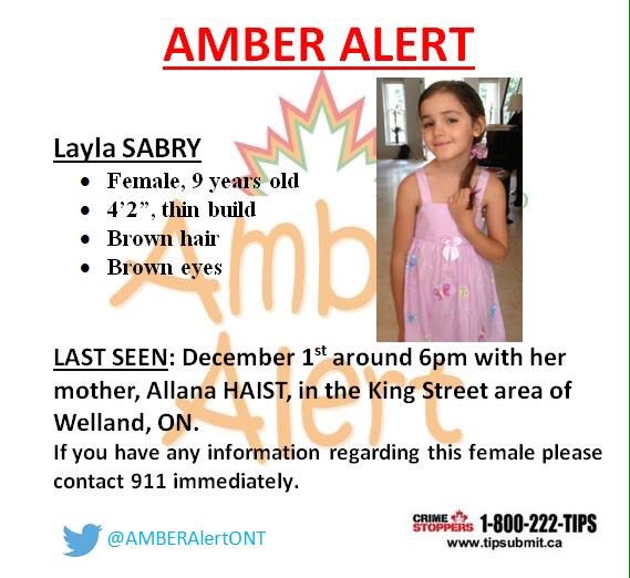 WELLAND – A province-wide Amber Alert has been issued for a young girl possibly abducted by her mother. Layla Sabry, 9, was last seen Thursday […]