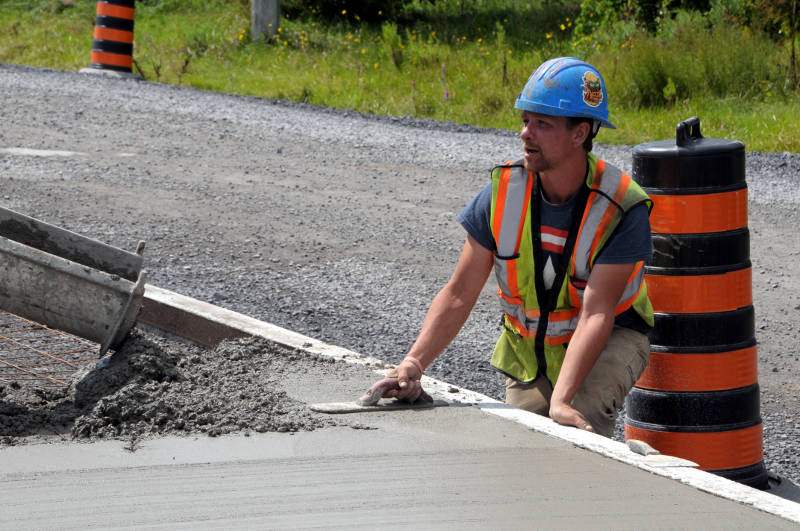 Iroquois Roundabout Tour Aug2417 02 Edited A construction worker smooths concrete on a traffic circle island. Scenes from the roundabout construction tour Thursday, Aug. 24, 2017. (Newswatch Group/Bill Kingston)