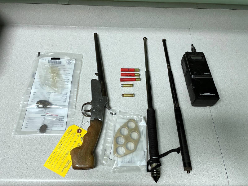Ottawa Man Charged Weapons TWPEK Jun2322 E In this supplied photo, some of the items seized by Grenville County OPP on Wednesday, June 22, 2022 after a traffic stop near Cardinal, Ont. (Grenville County OPP via Newswatch Group)