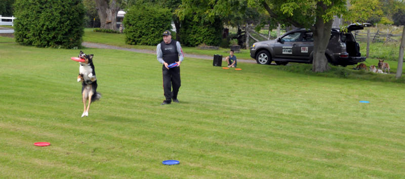 Woof N Wash 02 Sep1915 Edited Rip of Rip’s Disc Dogs latches on a frisbee during a trick show Sept. 19, 2015 at the Woof ‘N Wash fundraiser in Brockville. (Newswatch Group/Bill Kingston)