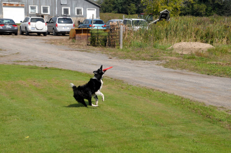 Woof N Wash 06 Sep1915 Edited Eight year old ‘Oz’ latches on a disc during the Rip’s Disc Dogs demonstration at the Woof ‘N Wash charity event Sept. 19, 2015 in Brockville. (Newswatch Group/Bill Kingston)